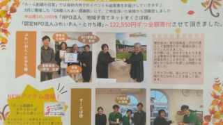 ◯ホーム創建様より、今年もご寄付を頂きました! 毎年、ホーム創建さまが開催されるイベントで ...