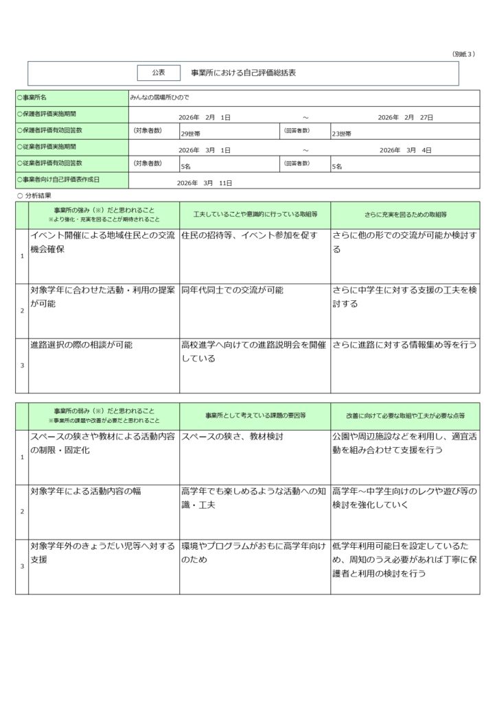 令和7年度 事業所&保護者 評価表 3月 2026 月火水木金土日 1 2 3 4 5 6 7 8 9 10 11 12 13 14 15 16 17 18 19 20 21 22 23 24 25 26 27 28 29 30 31 « 2月 4月 » Posted by すくさぽ