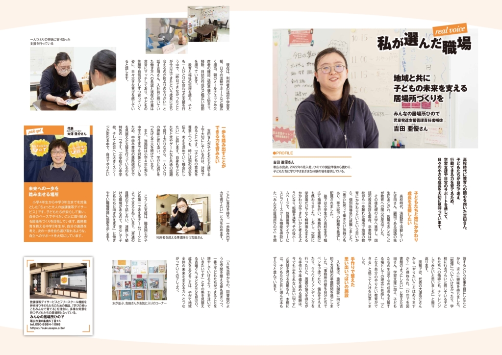放課後等デイサービス入社3年目、吉田亜優さん(児発管補佐)の記事を掲載して頂きました![]()